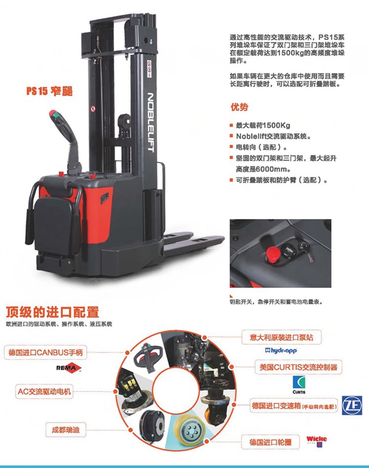 通过交流驱动技术,PS-系列堆高车保证了双门架和三门架堆高车在额定载荷达1500kg / 2000kg的高频度堆垛操作中的高性能。若车辆在更大的仓库中使用且需更长距离行驶时,则可选配可折叠式的踏板。