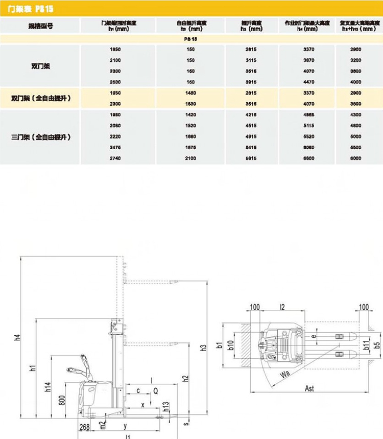 | 基本尺寸 | 4.2 | 门架缩回时高度 | h1(mm) | 2220 |