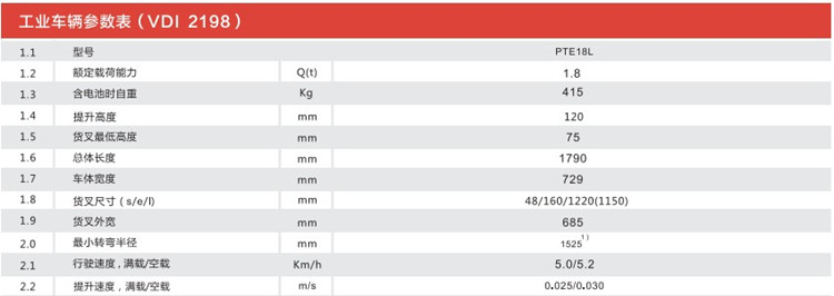 | 4.22 | 货叉尺寸 | s/e/l (mm) | 50/160/1220(1150) | |