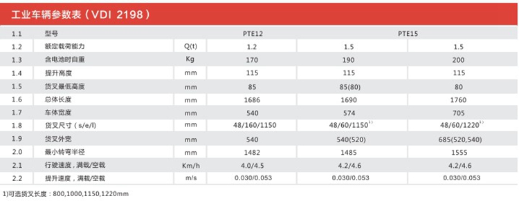 | 工业车辆参数表(VDI2198) | |||||||